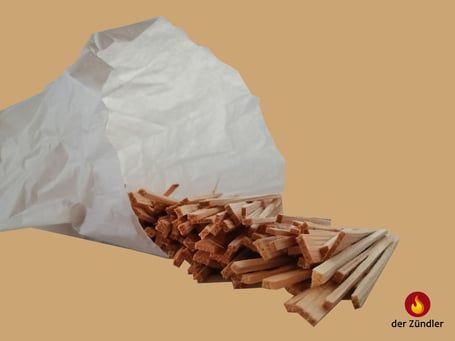 Ca. 350g aus Kiefer, extra-fein gespalten, Länge ca. 11 cm, trocken, rindenfrei, 100%ig sauber, im Papiersackerl verpackt